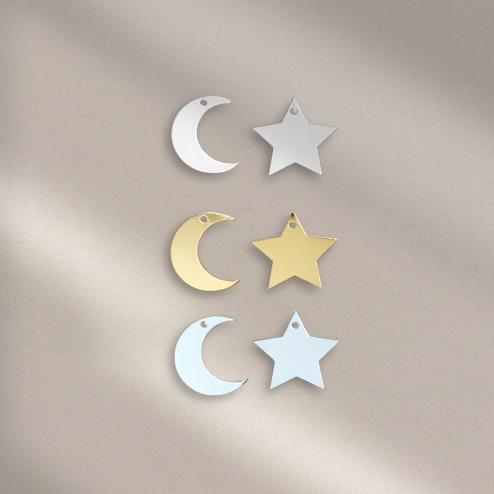 تاق او ستيكر اكريلك فضي وذهبي مرايا نجمة وهلال
