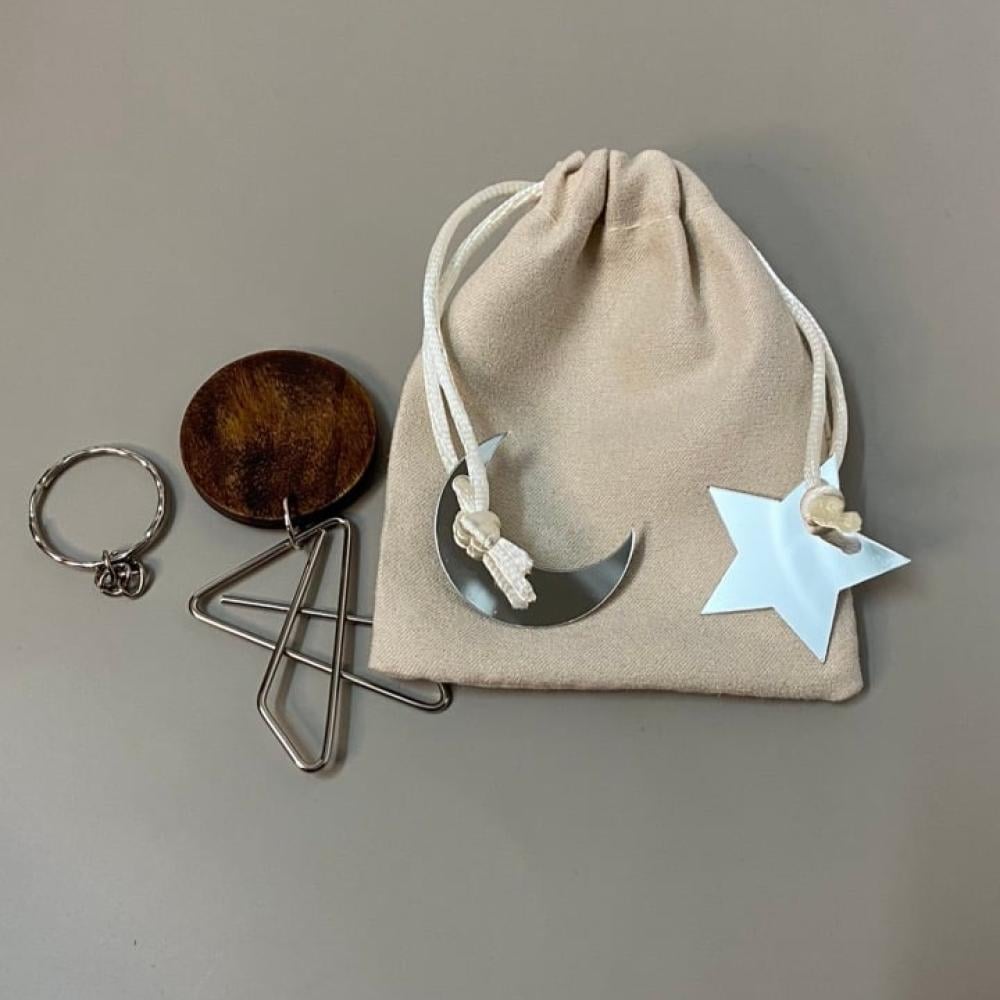 مع كيس قماشي بيج وتعليقات الهلال والنجمة